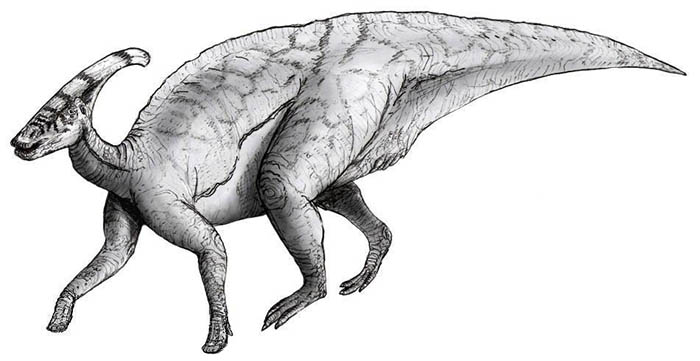 Parasaurolophus is a huge plant-eating dinosaur that was common 75.5 million years ago in what became Southern Utah. It is estimated that it grew to 9.5 m (31 ft.) in length, and 2.5 tonnes in weight. Parasaurolophus is known for the long crest that protrudes from the rear of the head.